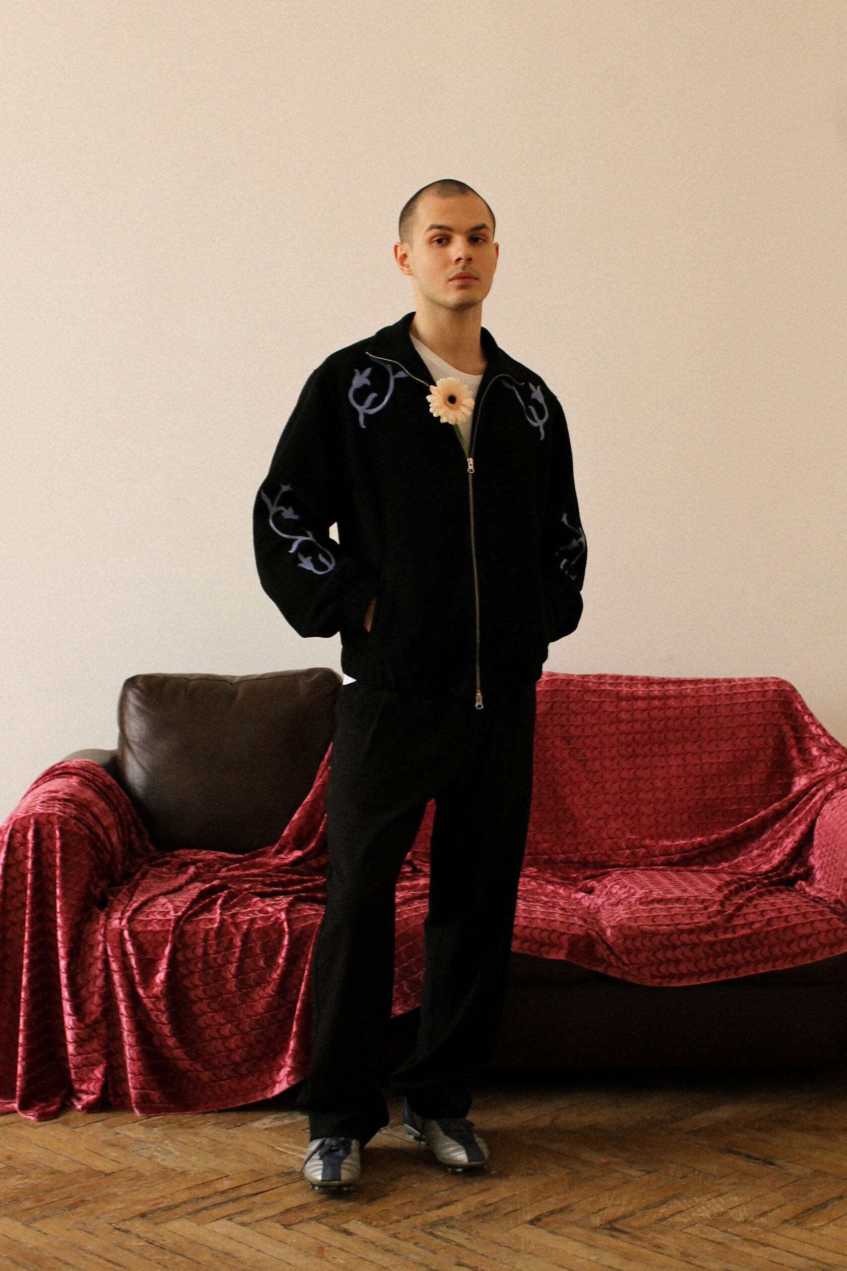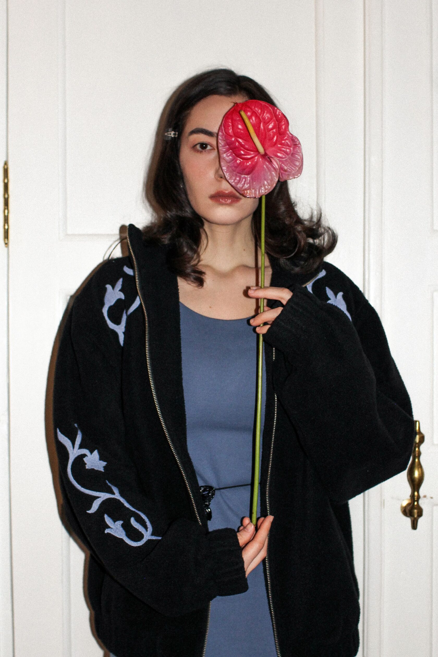 Унисекс куртка из флиса с голубой вышивкой растительных мотивов чеченских орнаментов. Изготавливается под заказ — не в наличии. Каждое изделие создаётся индивидуально в течение 2−4 недель.