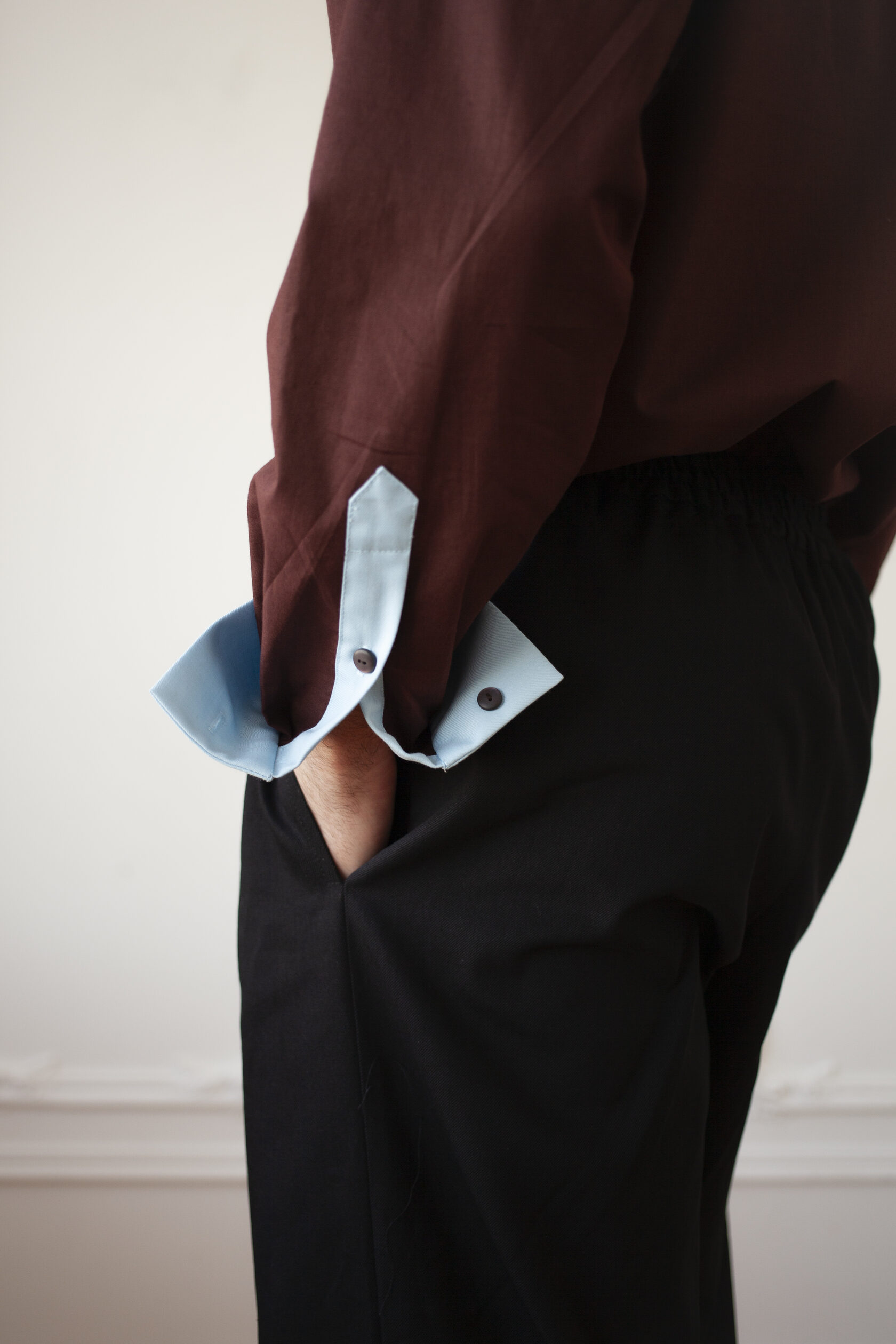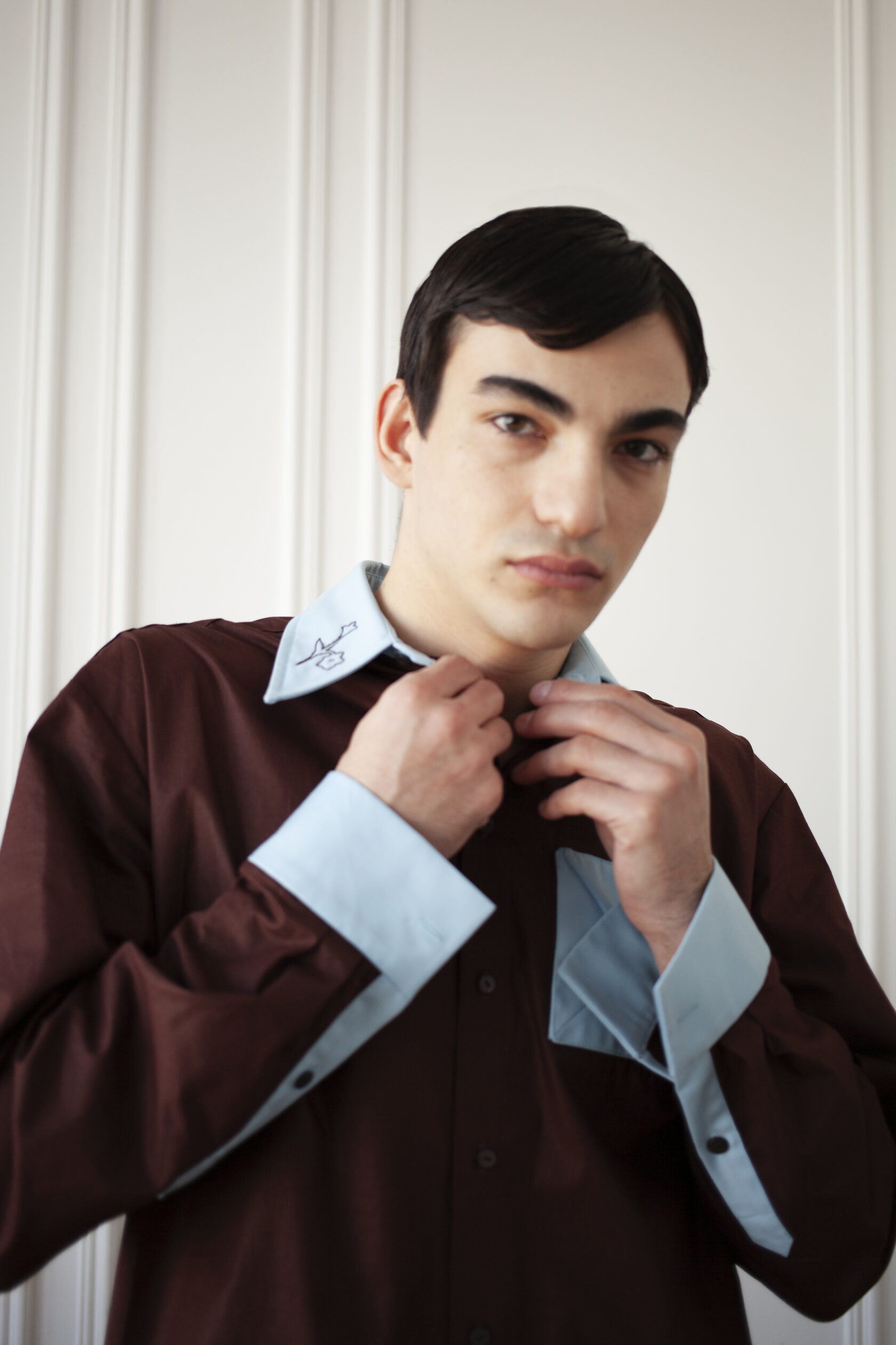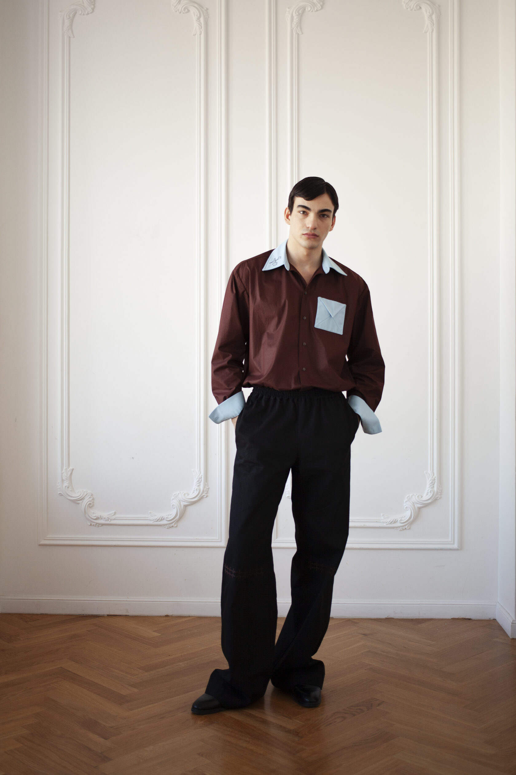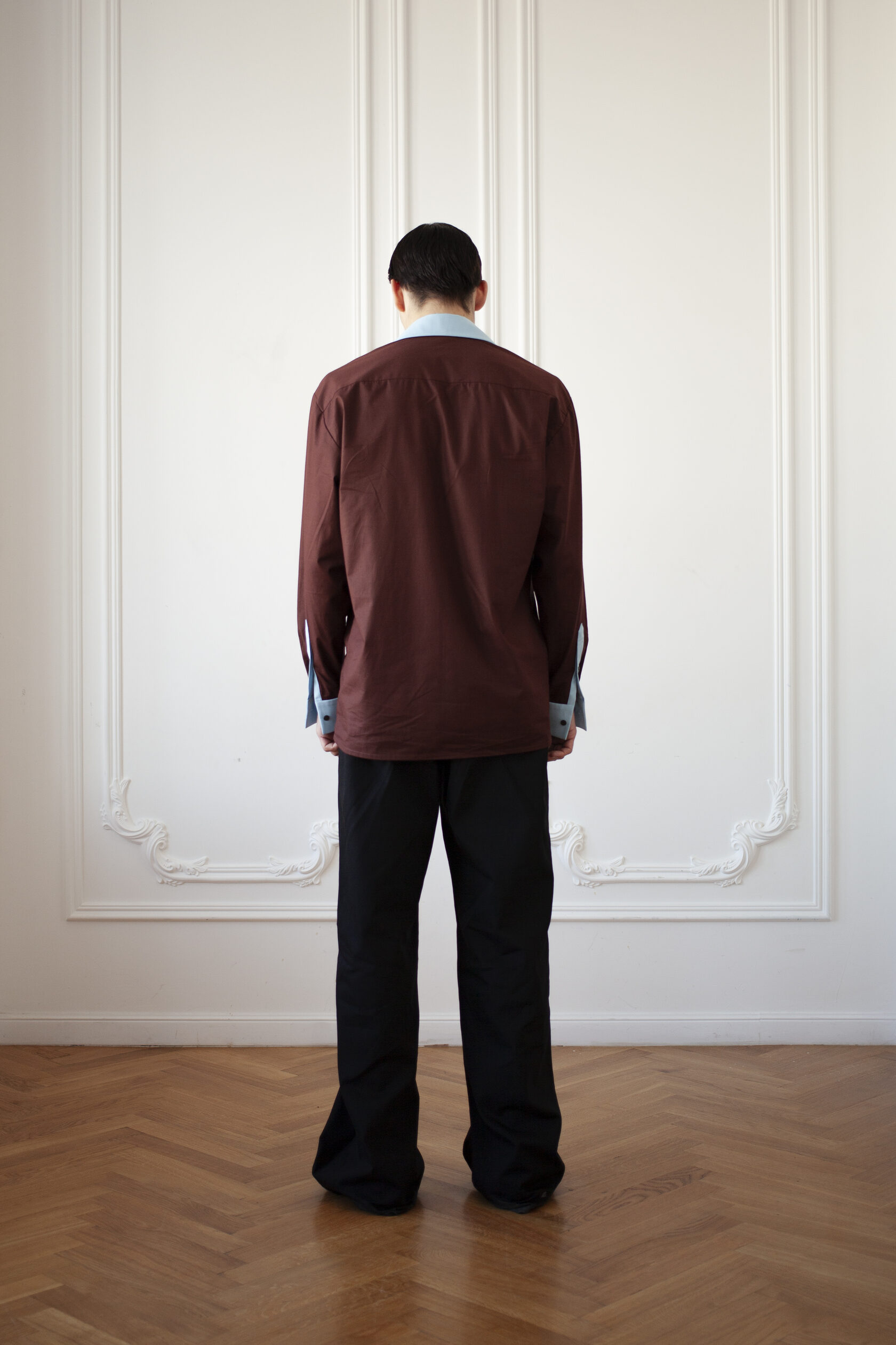 Мужская рубашка объемного силуэта с контрастными деталями и ручной вышивкой растительного мотива. Изготавливается под заказ — не в наличии. Каждое изделие создается индивидуально в течение 2−4 недель.